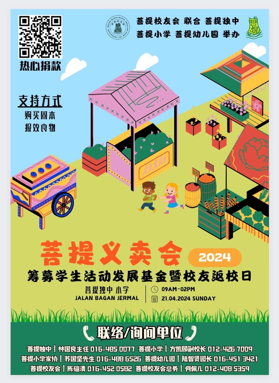 为了让学生可以有更完善及舒适的六育教育,今年菩提校友会,联合菩提独中、菩提小学以及菩提幼儿园举办菩提学校义卖会,以筹募课外活动发展基金,让学生可以在更好的软硬件条件下发挥才能。