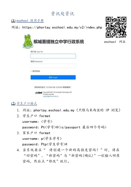 网址:https://phortay.eschool.edu.my/v2/index.php