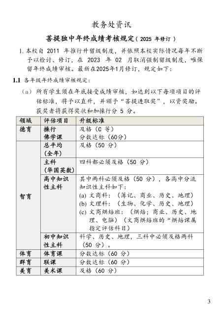 菩提独中年终成绩考核规定( 2025 年修订 )