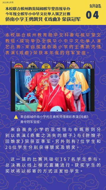 侨南小学王勇凯凭《戏曲》荣获冠军