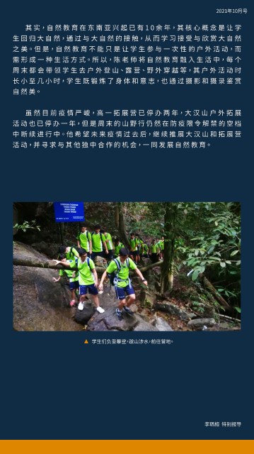 周末都会带领学生去户外登山、露营、野外穿越等,其户外活动时