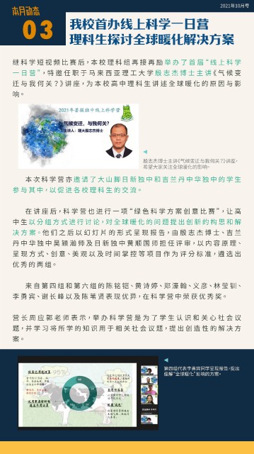 一日营 ”,特邀任职于马来西亚理工大学 殷志杰博士主讲《 气候变