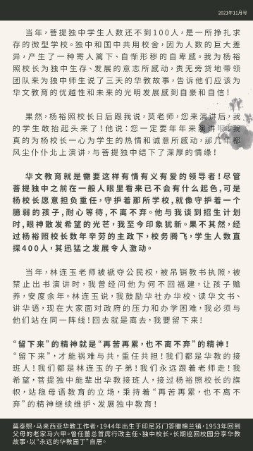 故事,以“永远的华教园丁”自居。