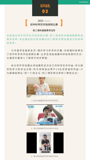 了初中科学实作短视频比赛,让学生借由拍摄科学短视频的方式,