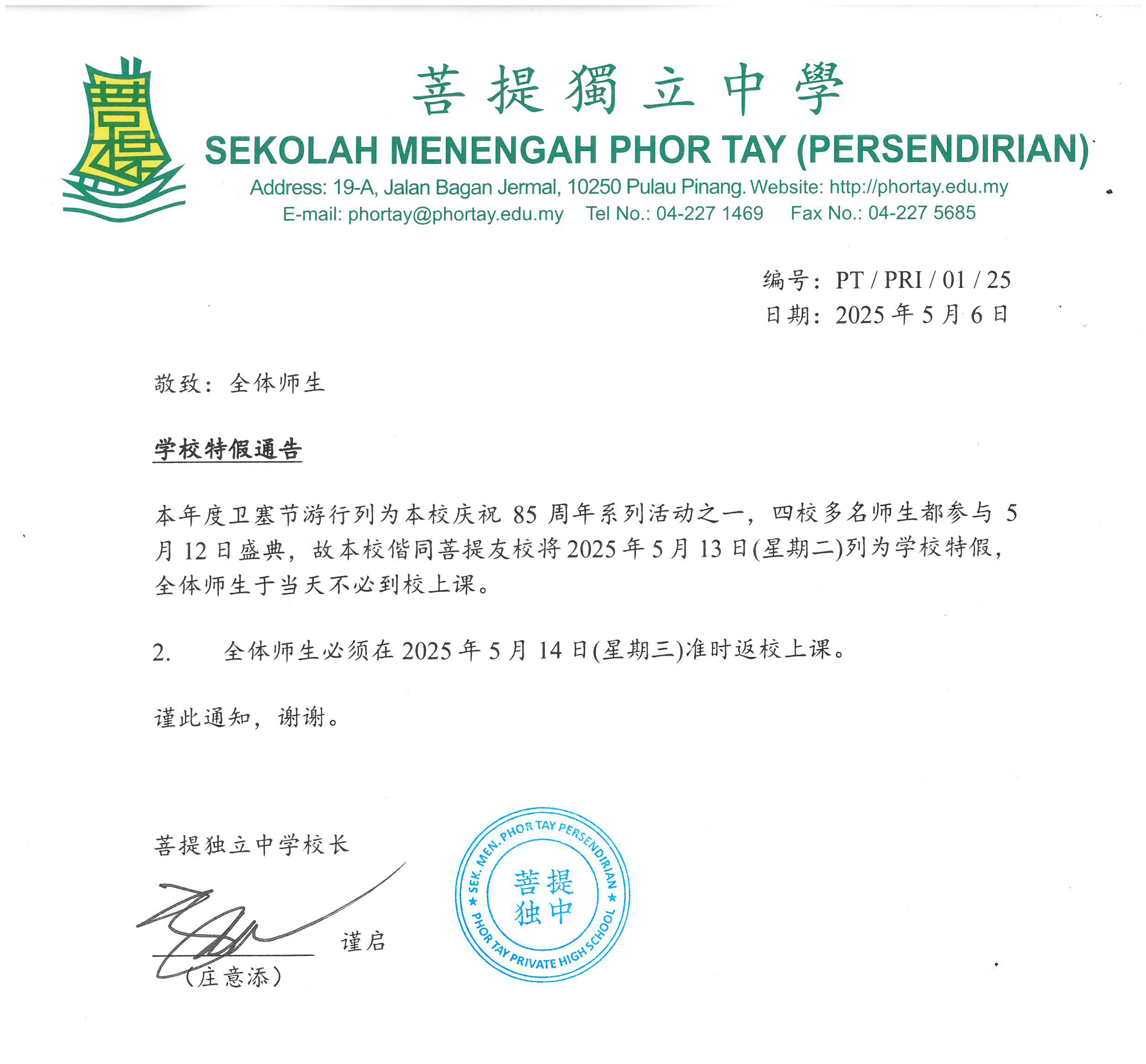 学校特假通告
