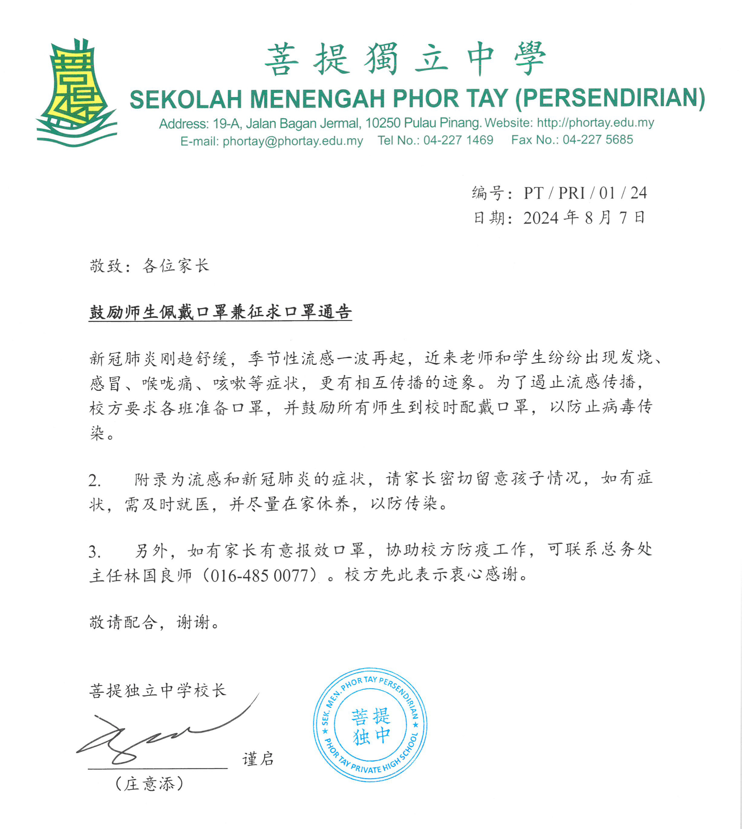 鼓励师生佩戴口罩兼征求口罩通告
