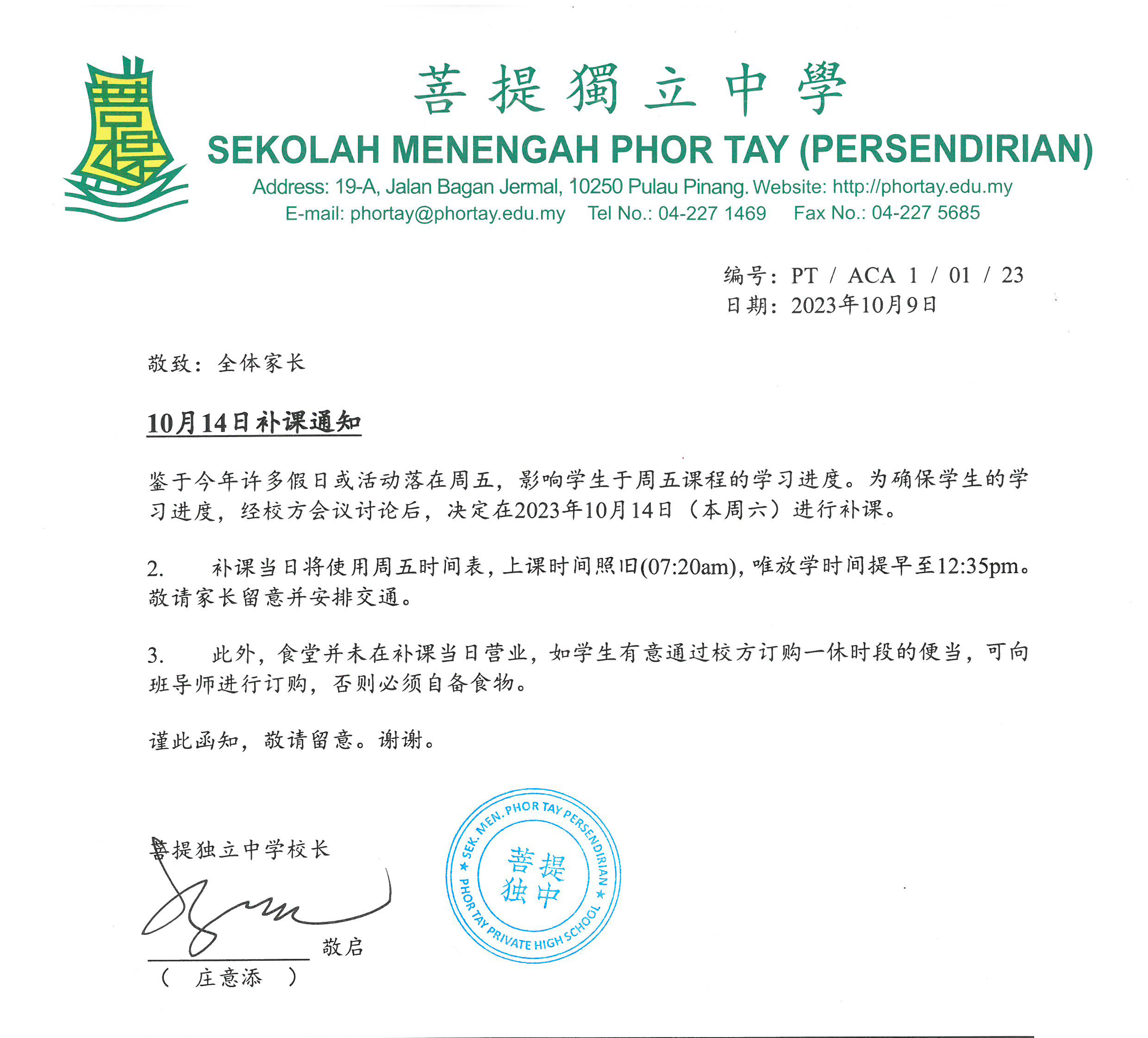 10月14日补课通知