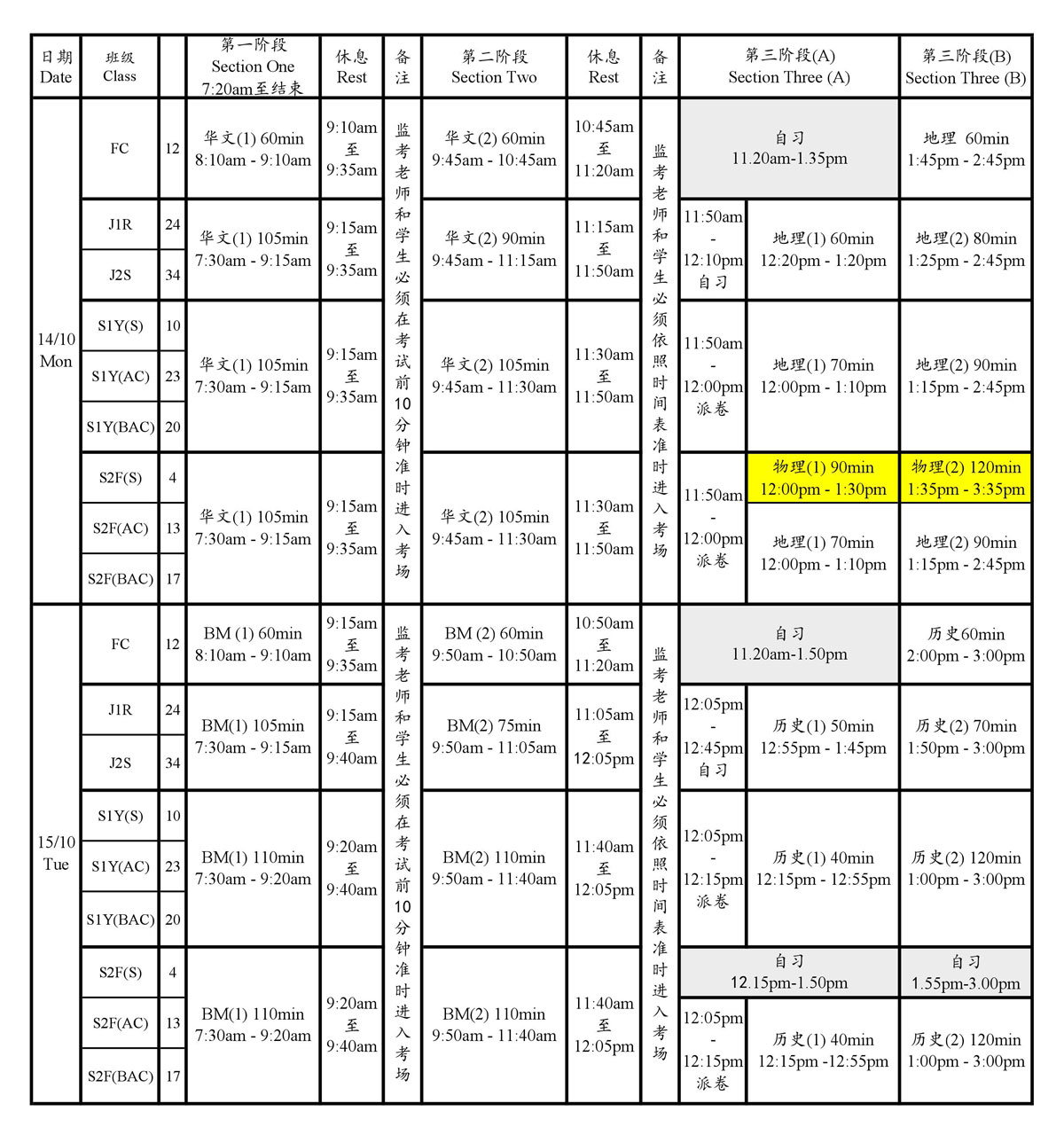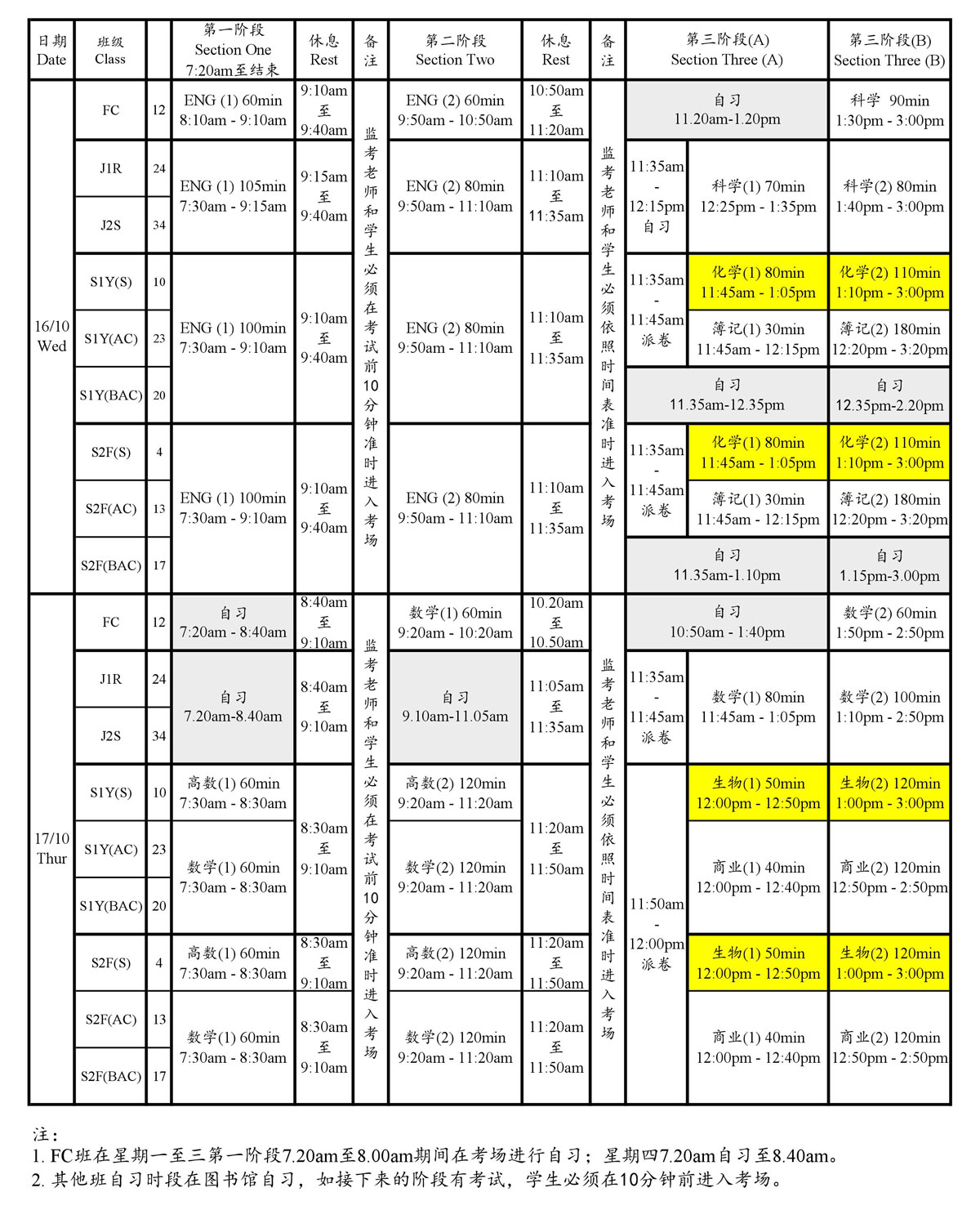 2019年第二学期期末考考试时间表 2019年第二学期期末考 考试时间表(修订于2019年10月1日) 2019 Semester Two Final Examination Timetable (Revised 1/10/2019) 教务处