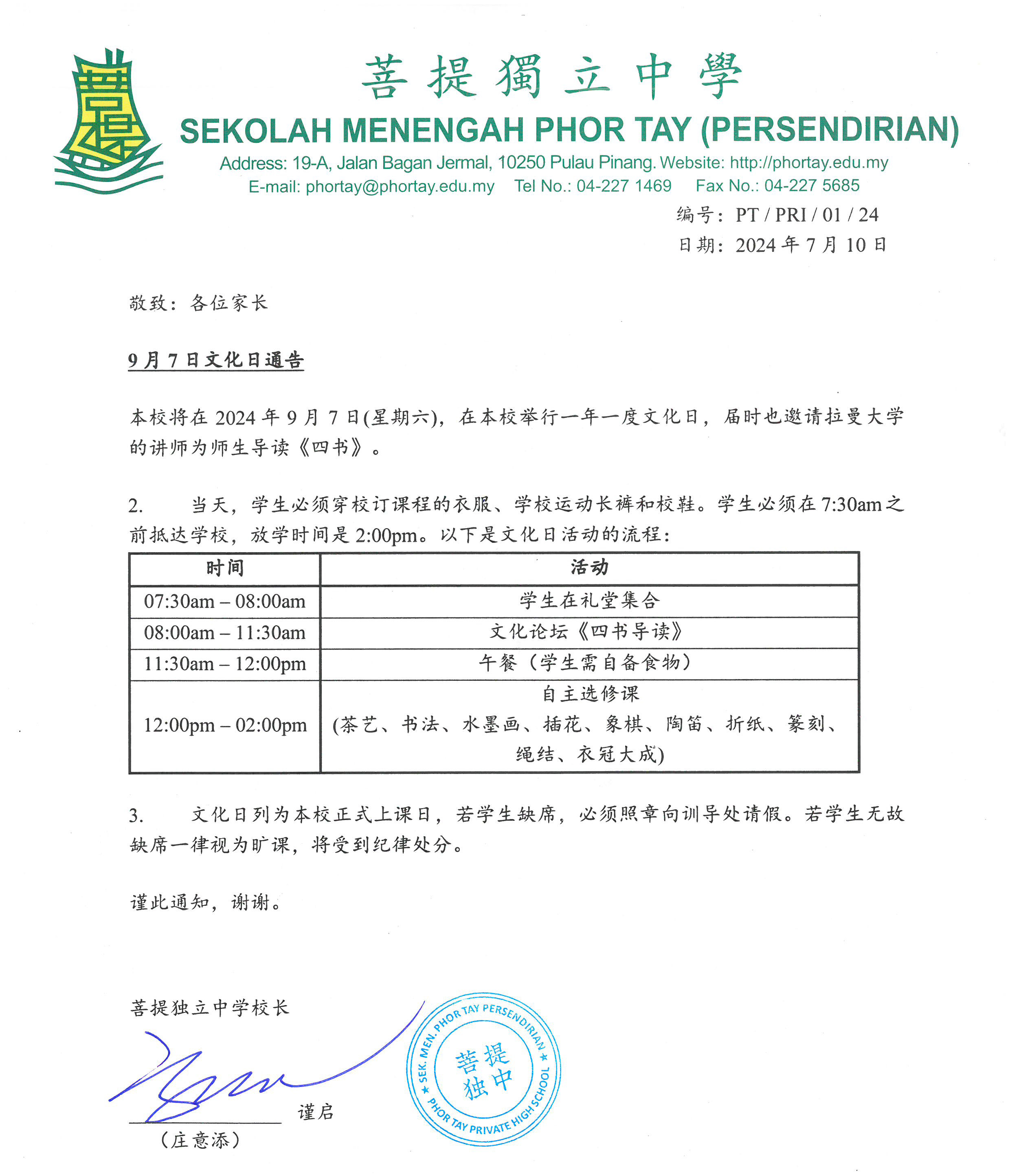 9月7日文化日通告
