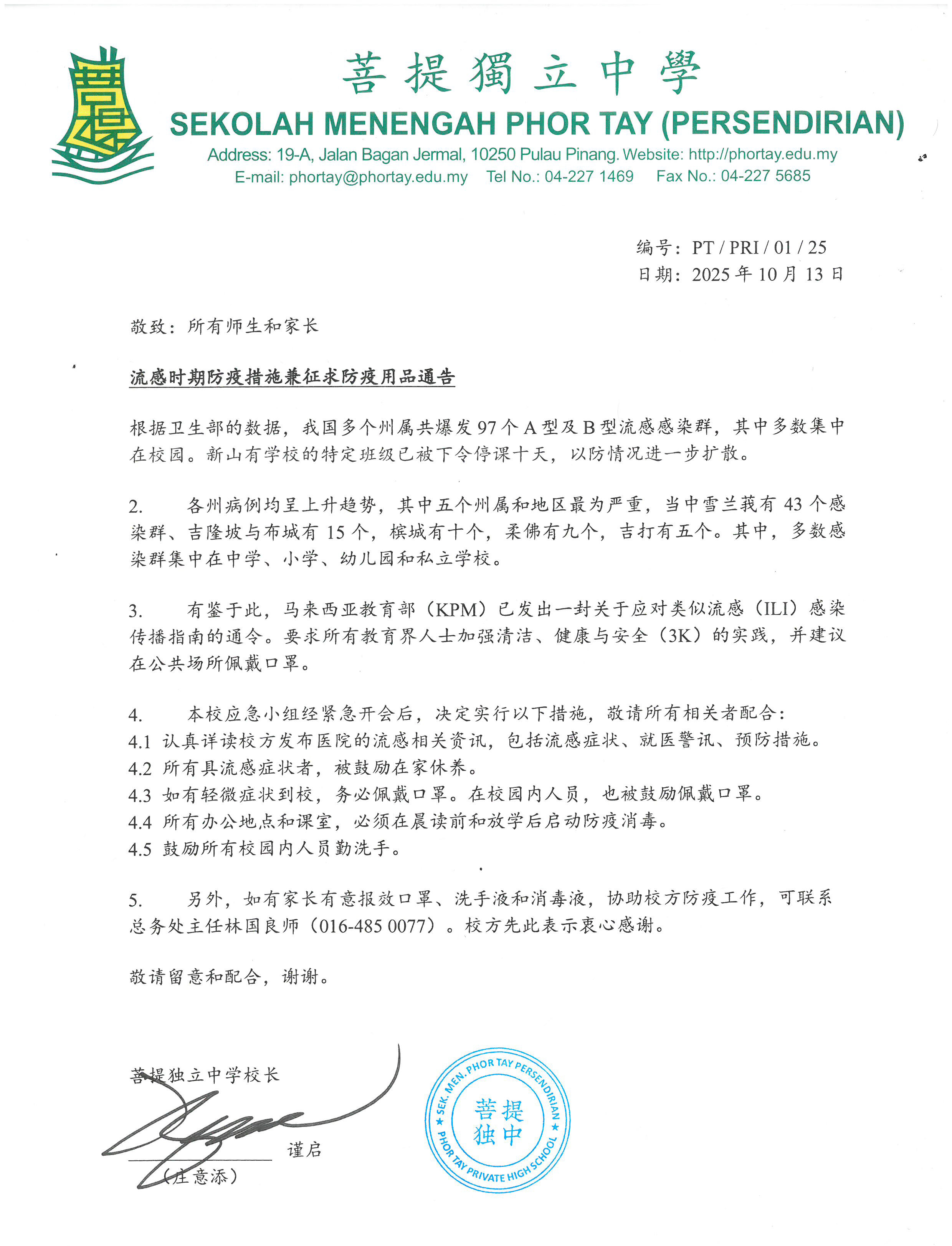 流感时期防疫措施兼征求防疫用品通告