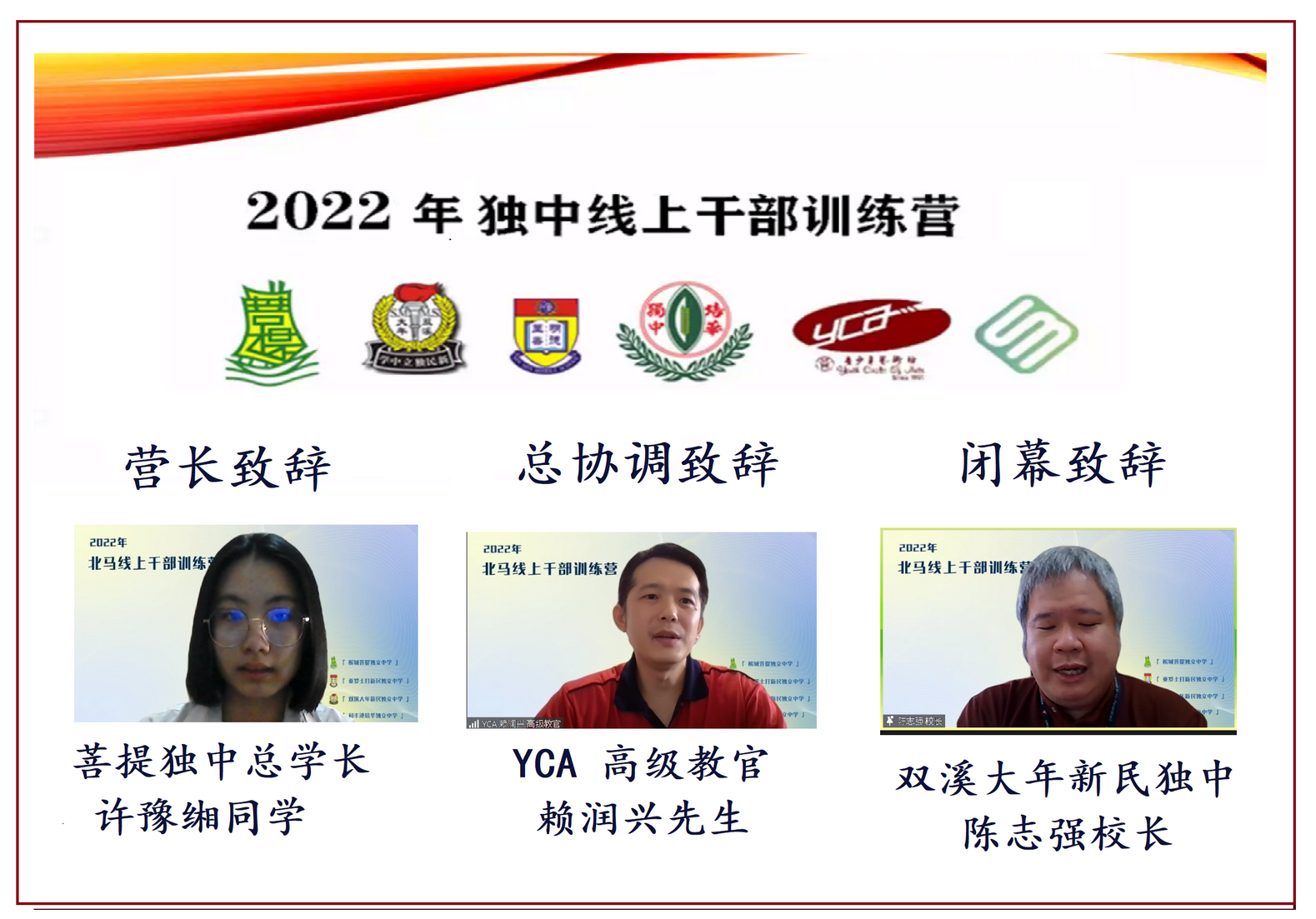 2022年独中中学生干训营正式落幕,学员们经历三天紧凑的学习和报告,都各有所获,满载而归,此训练营不啻为疫情阴影中的一道阳光。