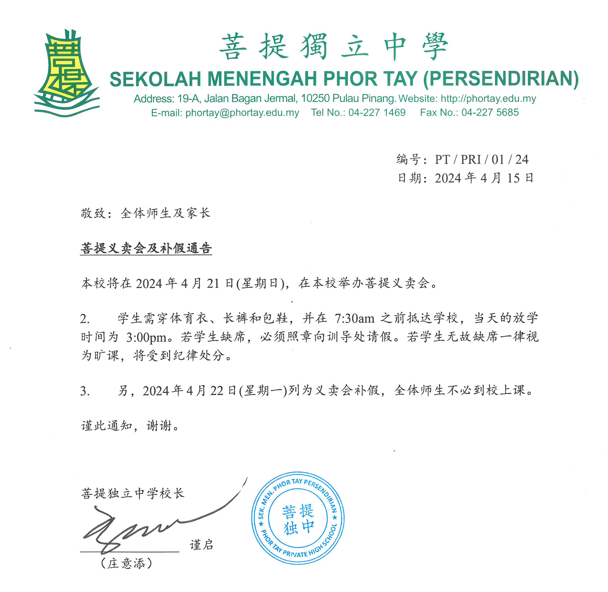 菩提义卖会及补假通告