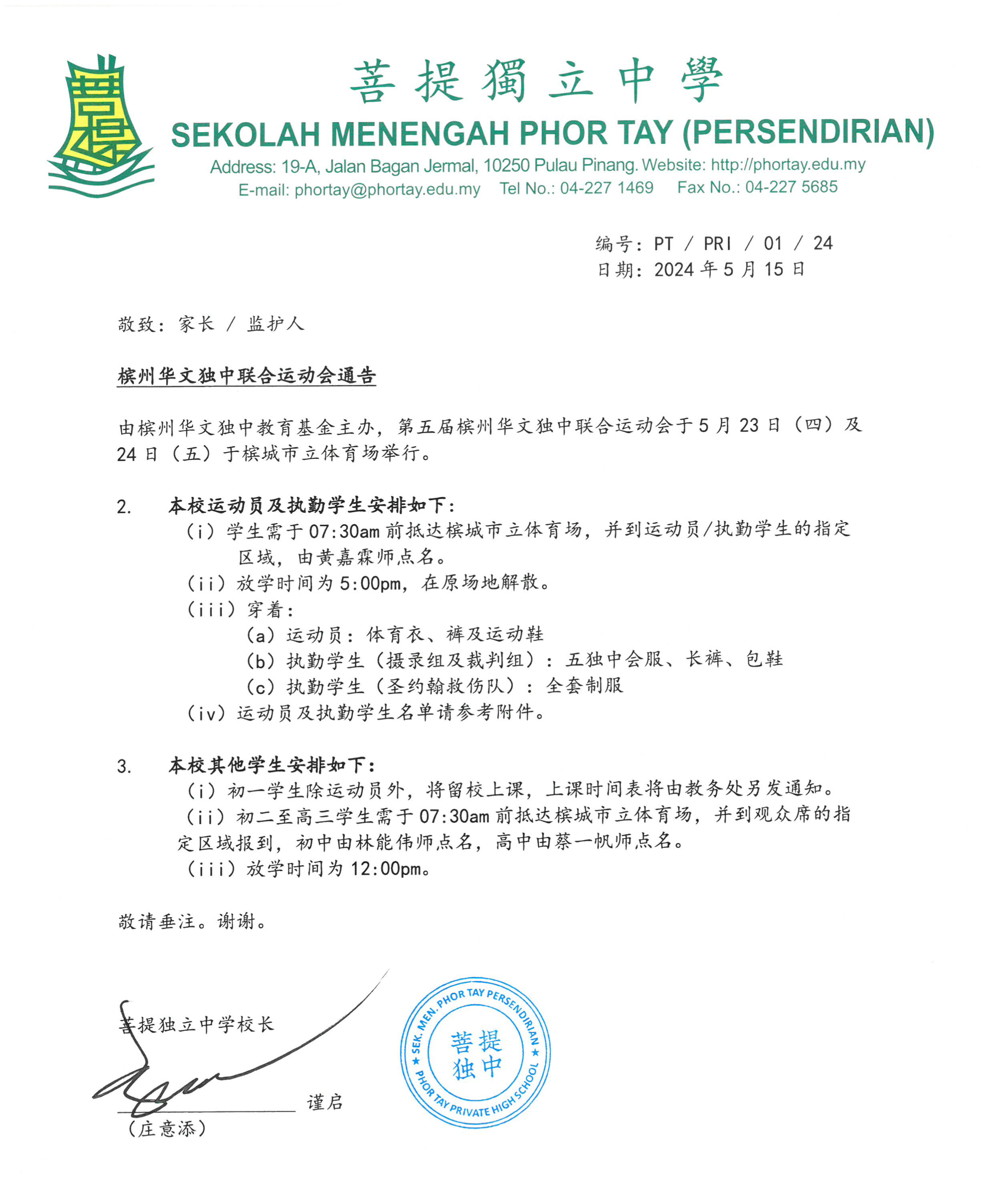 槟州华文独中联合运动会通告