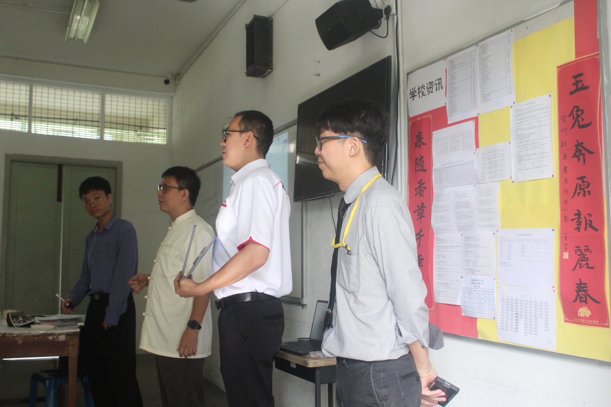 YB胡智胜在庄校长与蔡一帆副主任的陪同下,亲临各个班级的阅读角落参观,并依据书籍量、美观、整洁等各方面的标准进行评分,作为2024年第一学期阅读角落比赛的成绩。