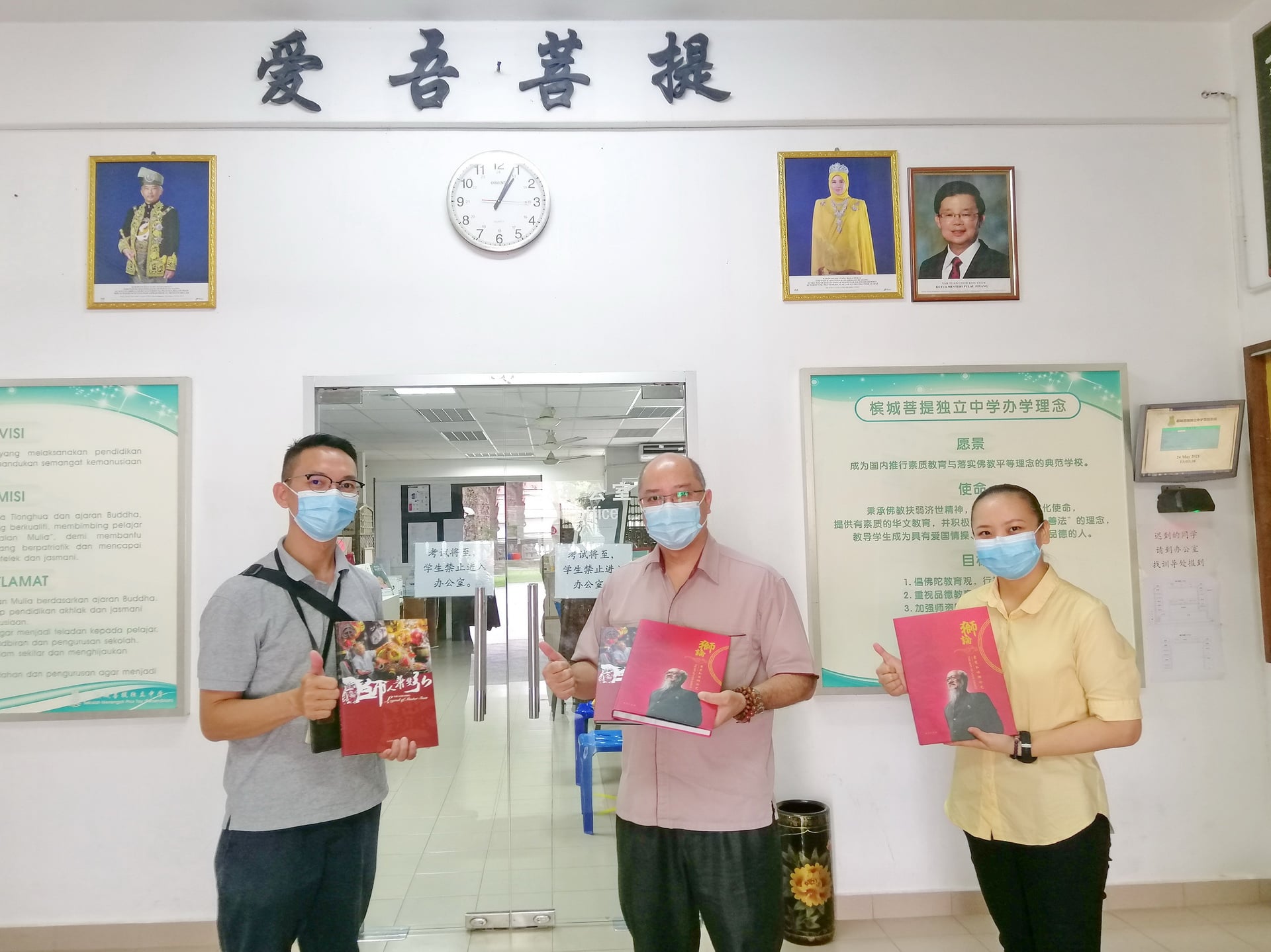 柯明财先生与萧斐弘師傅赠书予本校 感谢柯明财先生莅临本校,并赠送两套共四本《狮人萧斐弘》和《狮論萧斐弘谈狮论艺》的书籍给予本校。 本校感激柯明财先生和萧斐弘師傅对于本校的赠书,以让本校全体师生更了解舞狮的传统与由来。