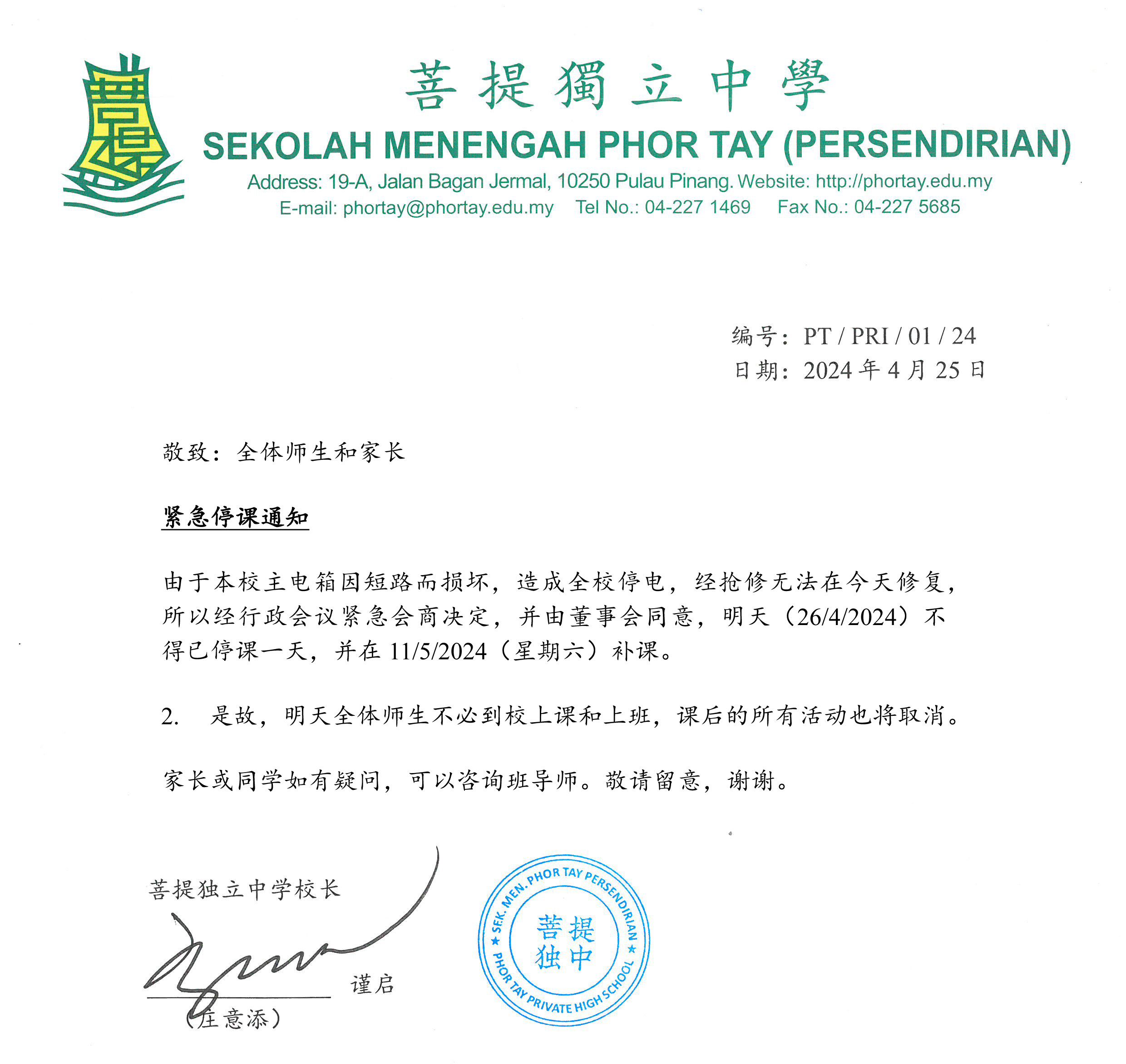 紧急停课通知