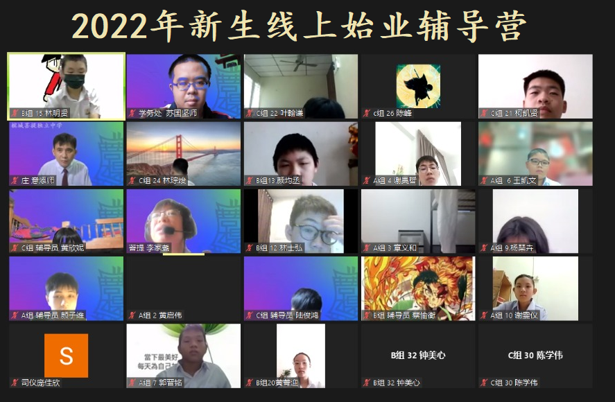 日前,本校已为现有的初一学生举行了线上新生始业辅导营,以让他们适应和了解本校的行政制度和相关人员。