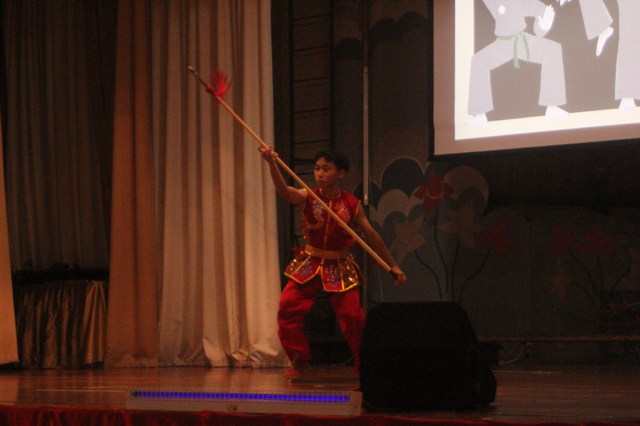 武术龙师团的《双狮献瑞》与《龙腾九霄》,以磅礴的气势赢得满堂喝彩,而来自该团的陈翃穅、陈煜縢、郭子贤同学也带来令人热血沸腾的《武弈》武术表演。