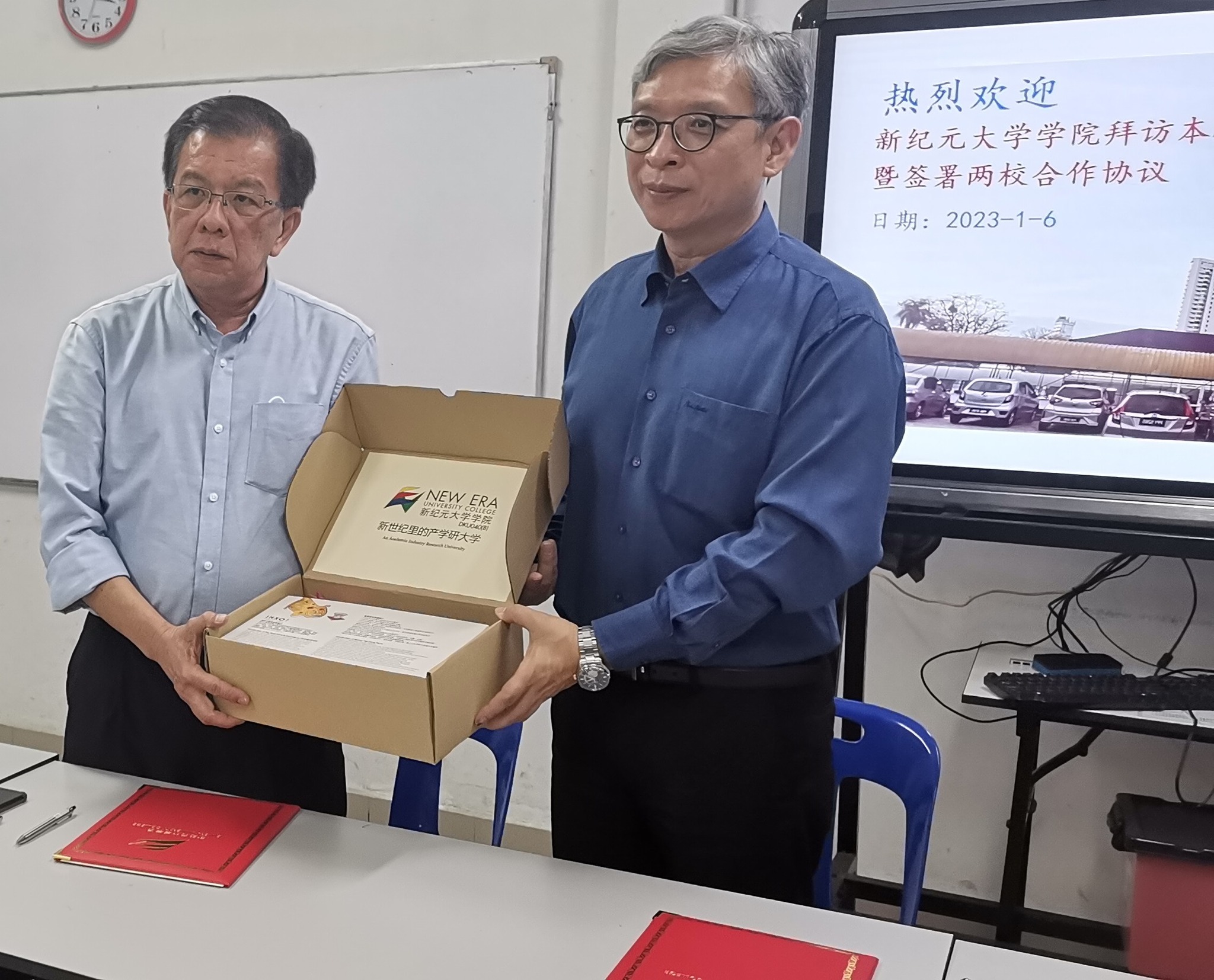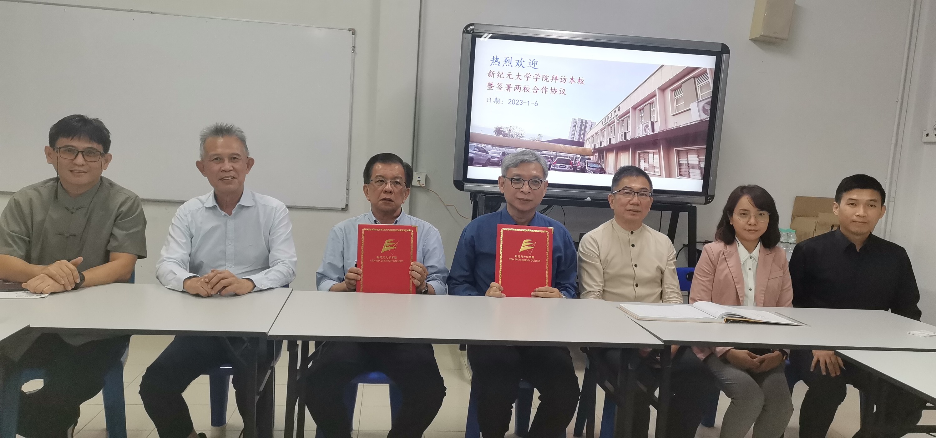 新纪元大学学院拜访本校,与本校签署两校合作协议,进行升学、学术、图书馆等资源共享。