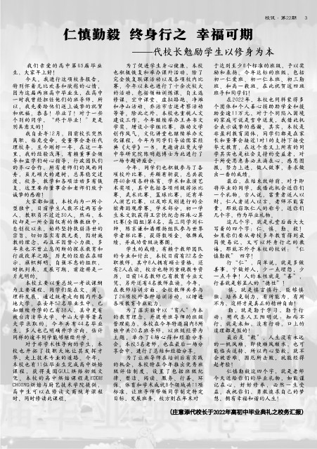(庄意添代校⻓于2022年⾼初中毕业典礼之校务汇报)