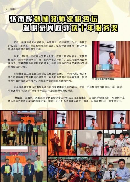 大会接着颁发教师长期服务奖予在校辛勤耕耘多年的老师。其中,五年届的有林能伟师、蔡一帆师、