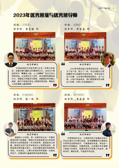 展现的努力和奉献,使我们的班级荣获2023年优秀                               学生在课业之外得以发挥。班导师需要时时鼓励及