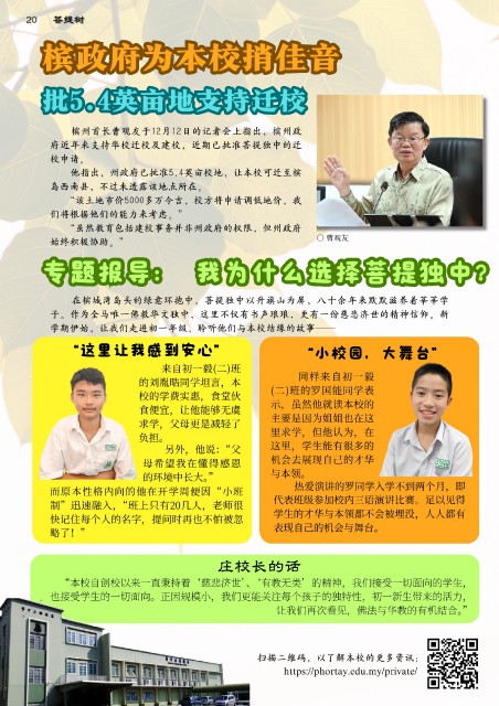 在槟城湾岛头的绿意环抱中,菩提独中以升旗山为屏,八十余年来默默滋养着莘莘学