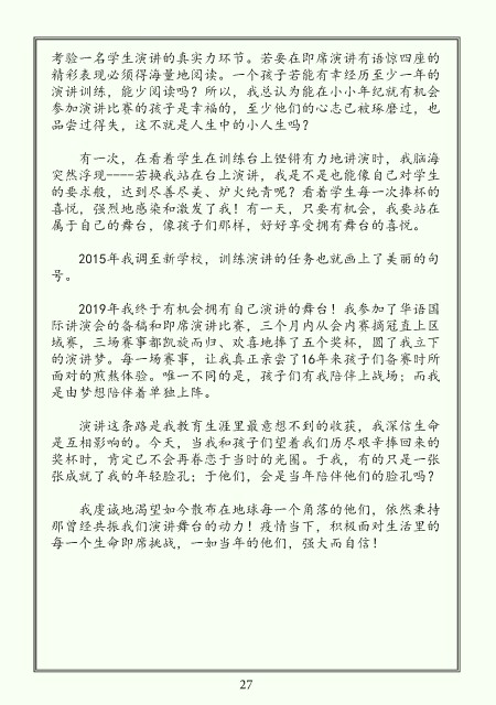 2015年我调至新学校,训练演讲的任务也就画上了美丽的句