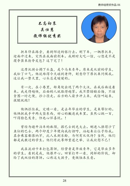 我松了口气。他说难得今天碰到老师,刻意停下摩托来问候我。