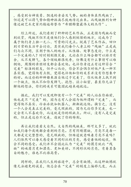 到日常的生活中去讨论,其实我们每个人身上的“残缺”正是我