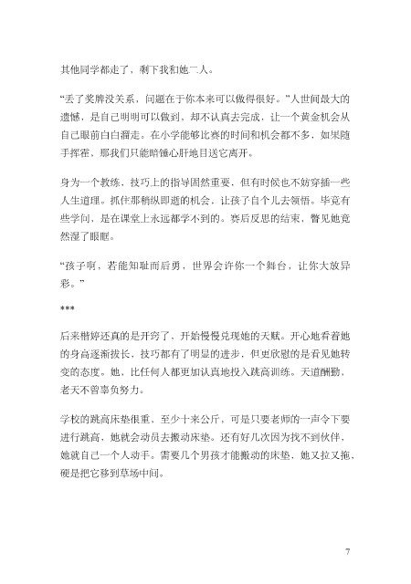 变的态度。她,⽐任何⼈都更加认真地投⼊跳⾼训练。天道酬勤,