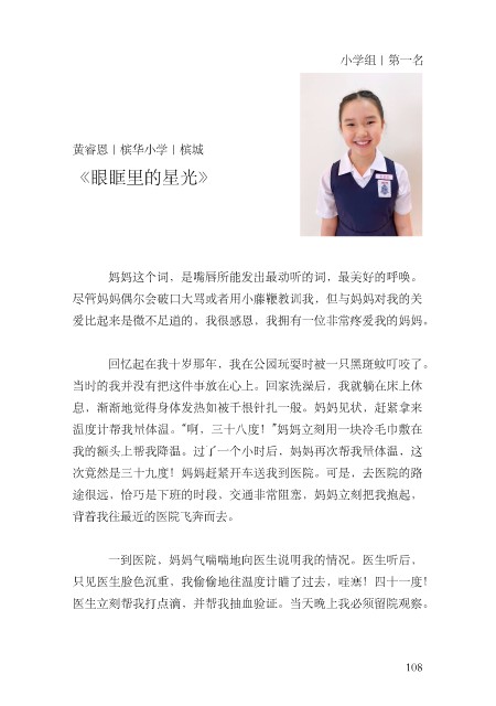 黄睿恩 | 槟华⼩学 | 槟城