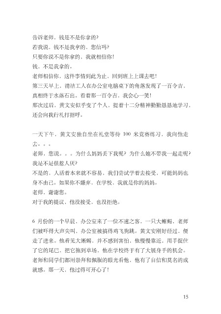 ⽼师和同学们都⽤崇拜和佩服的眼光看他,他有了⾃信和莫名的成