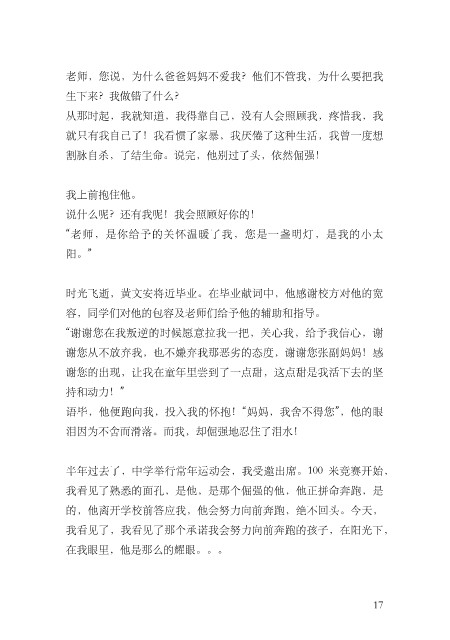 的,他离开学校前答应我,他会努⼒向前奔跑,绝不回头。今天,
