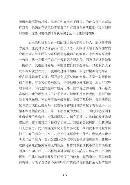声喊时,我的母亲从房门冲了出来,但她不是来救我的,此刻的她