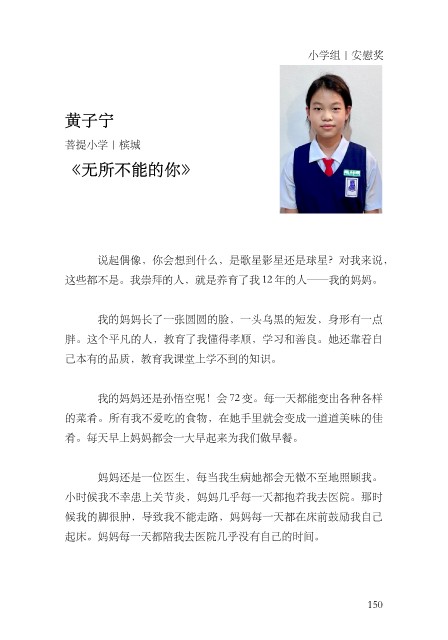 妈妈还是⼀位医⽣,每当我⽣病她都会⽆微不⾄地照顾我。