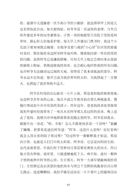 ⼦悄悄地种在阿爷的⼼⾥。⽣⽇那天,阿爷⼀⼤清早便敲响我的房