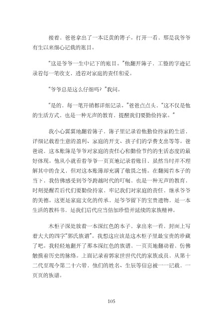 的美德。这更是家庭⽂化的传承,是爷爷留下的宝贵遗物,是⼀本