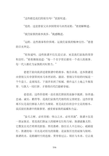⼀部家族史,更是我们郭家⼈的精神⽀柱和⼒量。族谱就像太阳,
