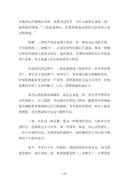 从他的⼼中流淌出来的。我曾问过爷爷,为什么他那么喜欢⼆胡。