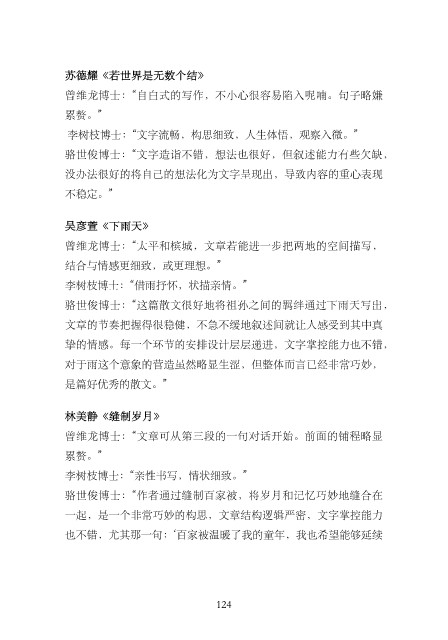 李树枝博⼠:“⽂字流畅,构思细致,⼈⽣体悟,观察⼊微。”