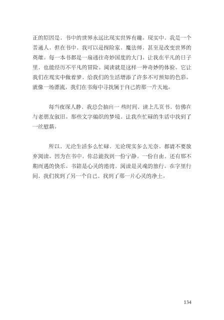 弃阅读。因为在书中,你总能找到⼀份宁静,⼀份⾃由,还有那不