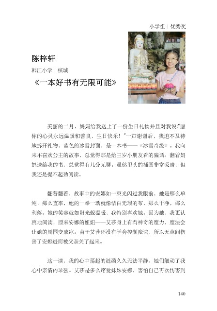 地拆开礼物,蓝⾊的冰雪封⾯,是⼀本书——《冰雪奇缘》。我向
