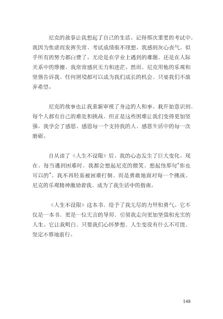 《⼈⽣不设限》这本书,给予了我⽆尽的⼒量和勇⽓。它不