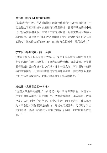 ⼼的作⽤。建议可对《0.1 秒决胜瞬间》中的关键情节进⾏更详细