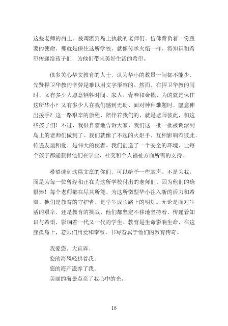 这些⽼师的肩上。被调派到岛上执教的⽼师们,仿佛背负着⼀份重