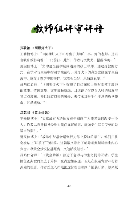 的故事。情感真挚,⽂笔流畅凝练,且述说了何以为⼈师的启发与