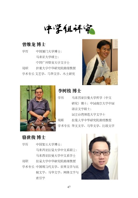 马来西亚拉曼⼤学中⽂系硕⼠;