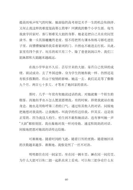 “⼤姐”都很别扭,我也像她对我⼀样对待她,通过和妈妈的对话,