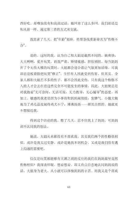 话。⼤姐⾝为⽼⼤,从⼩就可以体恤妈妈的⾟苦,⽽我又是个喜欢